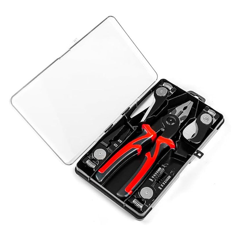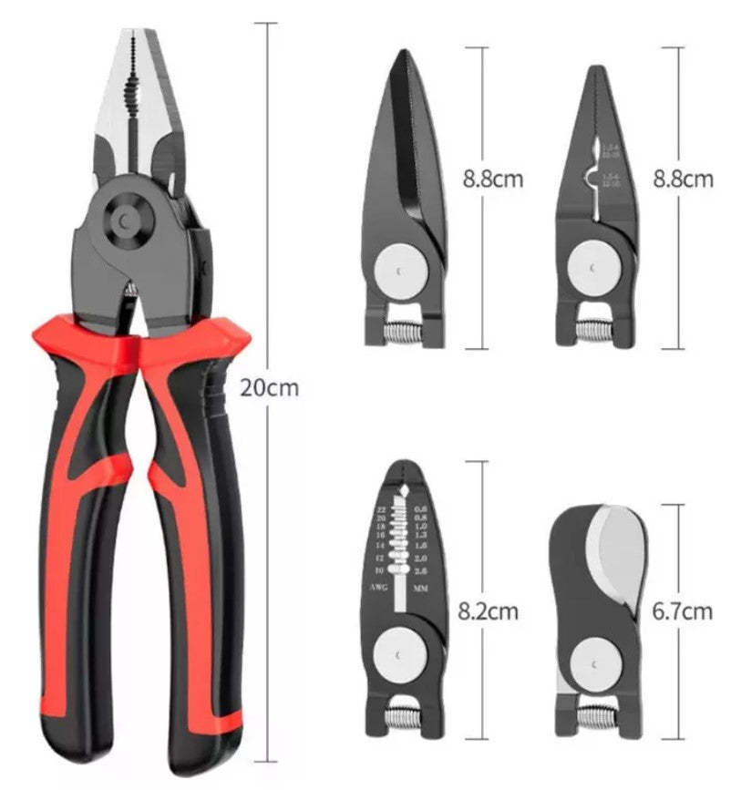 Presentamos el ALICATE 5 EN 1, la herramienta esencial que todo hogar debe tener. Con un diseño multifuncional, este alicate no solo corta y pela cables, sino que también engarza, corta chapa y alambre. Ideal para reparaciones eléctricas y trabajos de bricolaje, este kit está diseñado para ofrecer durabilidad, precisión y comodidad en cada uso. ¡Ya no necesitarás varias herramientas cuando puedes tener todo en una!