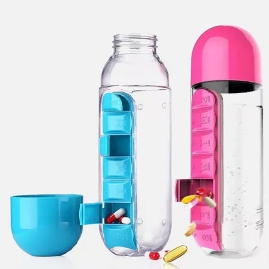 ✅ Combina un pastillero semanal y una botella de agua en un solo producto.