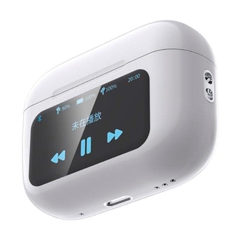 Con una capacidad de batería de 30mAh, los AirPods con Pantalla ofrecen entre 3 a 5 horas de reproducción continua. Además, el estuche de carga, que también cuenta con un enganche para correa, asegura que tus auriculares estén siempre listos para usar.