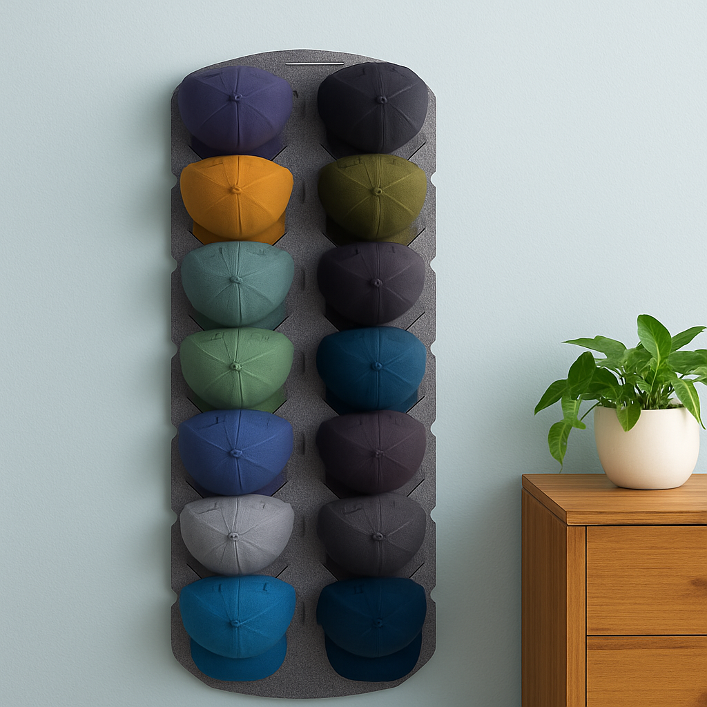 📌 El organizador tiene capacidad para 14 gorras, manteniéndolas visibles, ordenadas y sin deformarse.