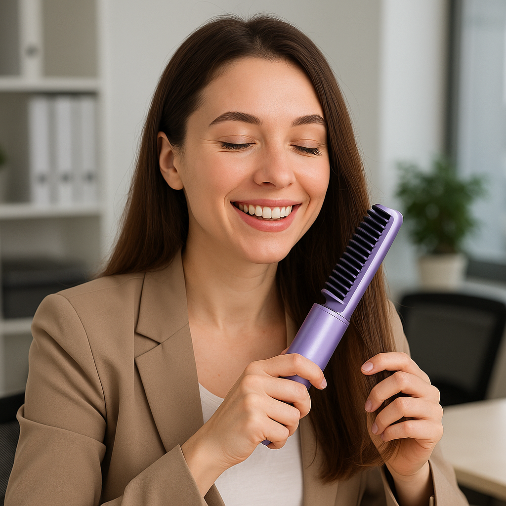 Gracias a su tecnología de calor regulado, el peine alisador recargable alisa tu cabello sin dañarlo. No hay más puntas abiertas ni calor excesivo, solo un alisado suave y natural que cuida la salud de tu melena.