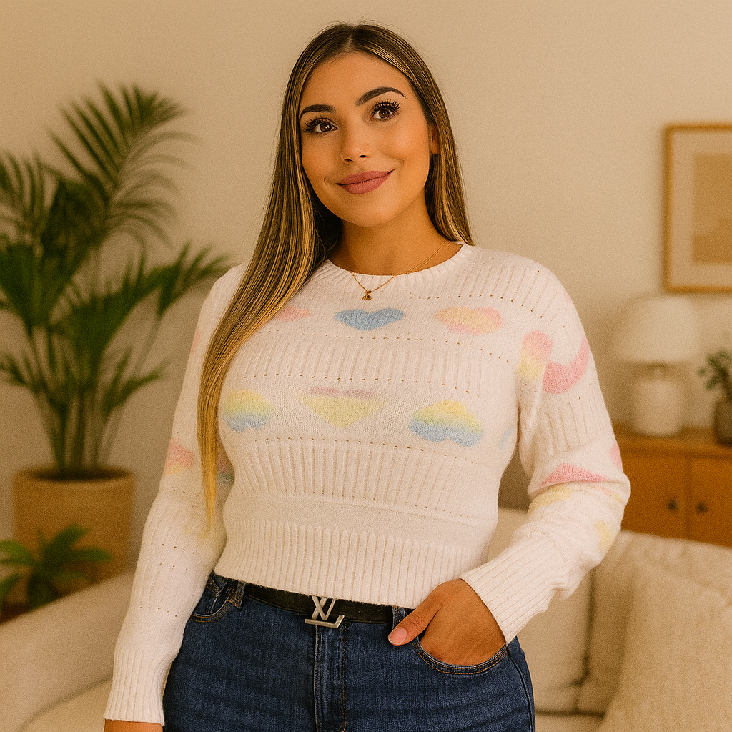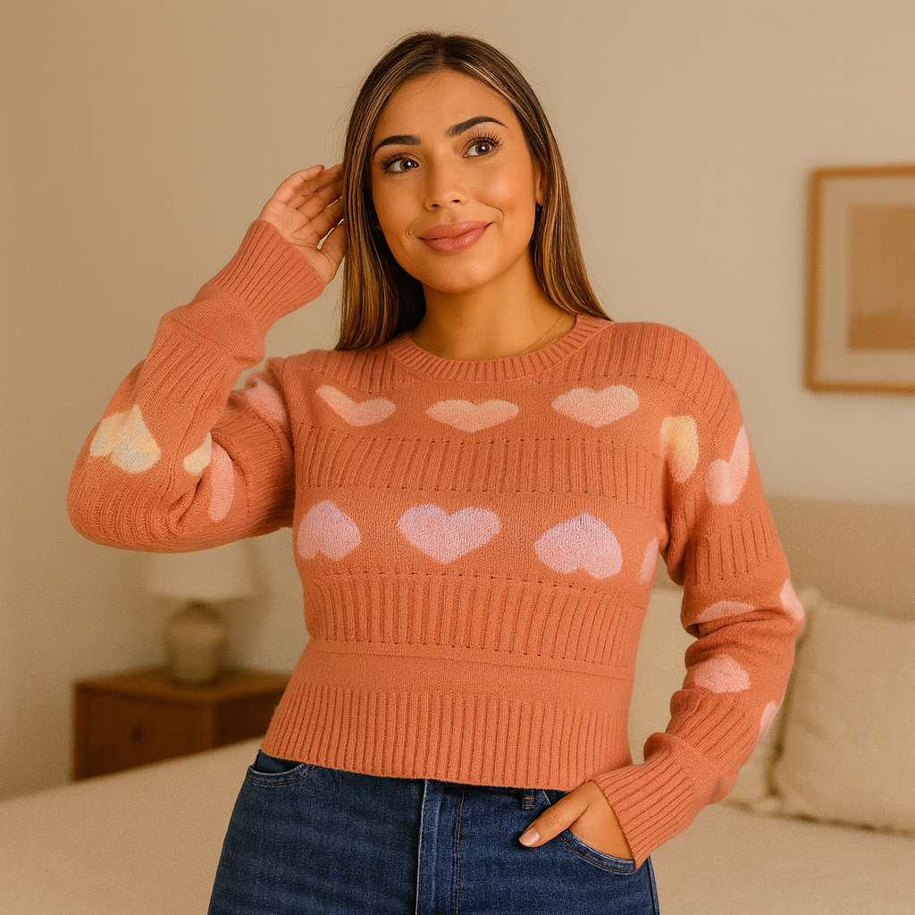 💖 Detalles modernos con corazones tejidos, que le dan un toque femenino y único.