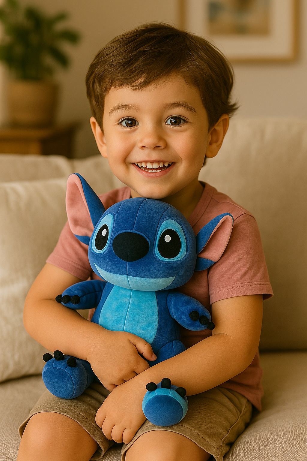 El Stitch perfecto para fans y pequeños: 45 cm de ternura con pelaje ultra suave, relleno de alta calidad y diseño fiel al personaje original. Ideal para abrazar, decorar o regalar y crear momentos inolvidables.