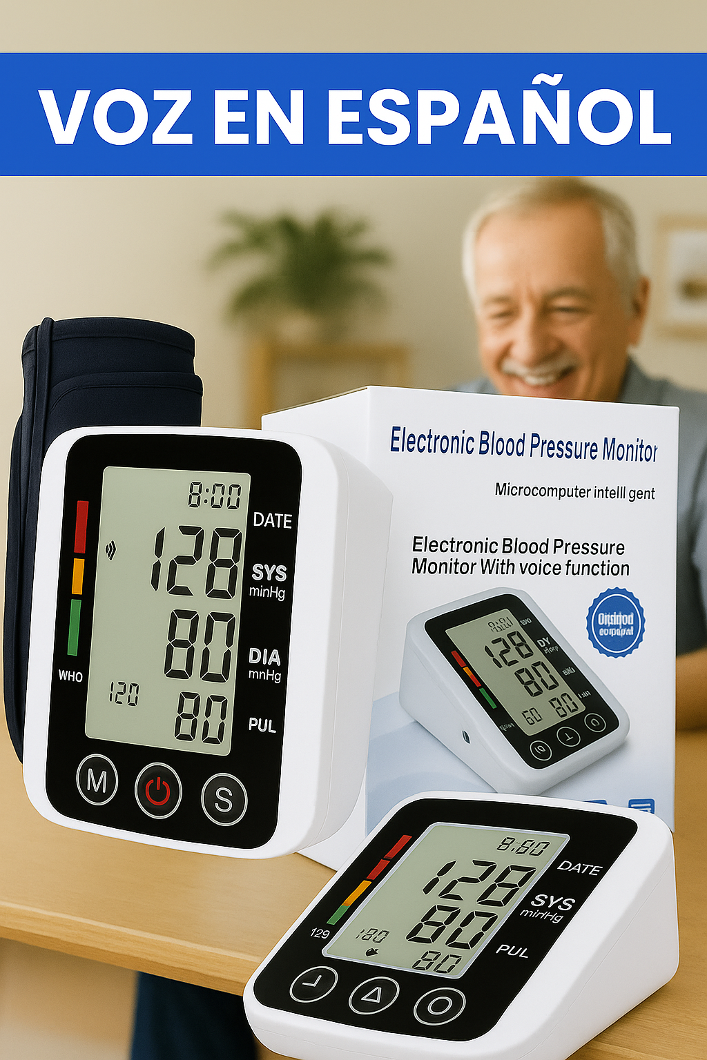 - ✅ Indicaciones por voz en español Te guía paso a paso durante la medición, ideal para personas mayores o con poca experiencia.